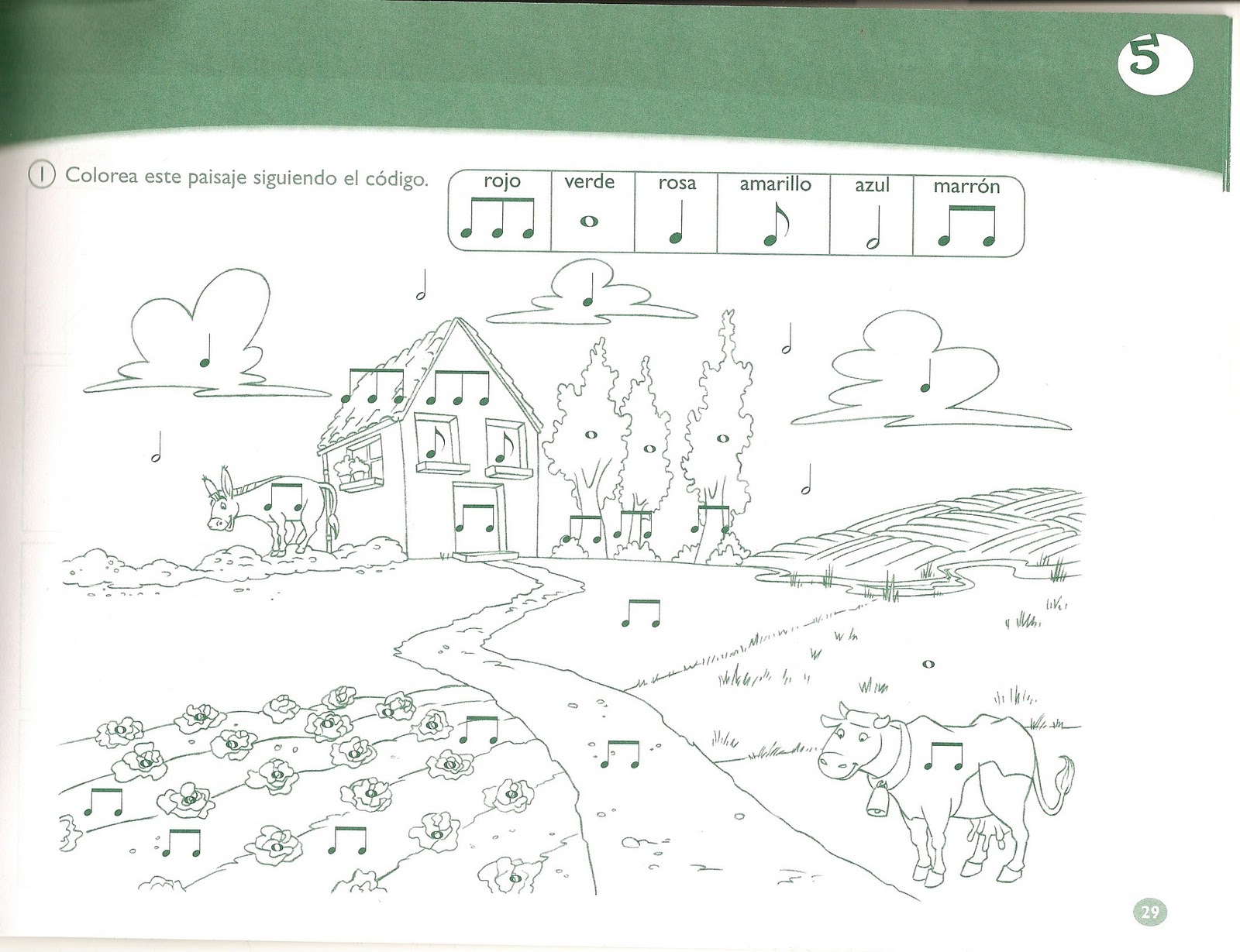 El otro día os hablaba de actividades musicales para realizar en infantil, y hoy le toca el turno a primaria. En concreto os quiero hablar de dos libros que utilizo en mis clases para primero y segundo. El primero de ellos es un libro de musicogramas de la editorial San Pablo. En él podéis encontar musicogramas de 1º a 6º de primaria, hay canciones tan conocidas como la vaca lechera o debajo un botón, a los alumnos les divierten mucho pues tras cantar la canción lo pasan en grande coloreando los dibujos. El segundo libro es de Pilar Pascual Mejía de Pearson Alhambra y se llama "La batuta mágica" los hay de diferentes cursos, yo tengo el de 3º de primaria que trae fichas de lenguaje musical muy chulas, en concreto he trabajado con una de códigos musicales muy interesante, aquí os dejo las portadas de los libros y algunas de las fichas que podéis encontrar en los libros. Perdonad si el escaneo no es muy bueno...podéis copiar las fichas y pegarlas en word para imprimirlas y utilizarlas en casa o en clase con los peques!